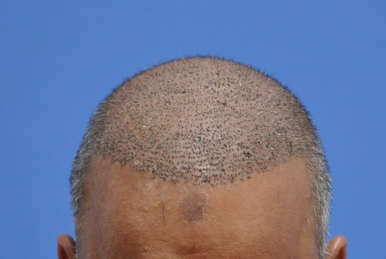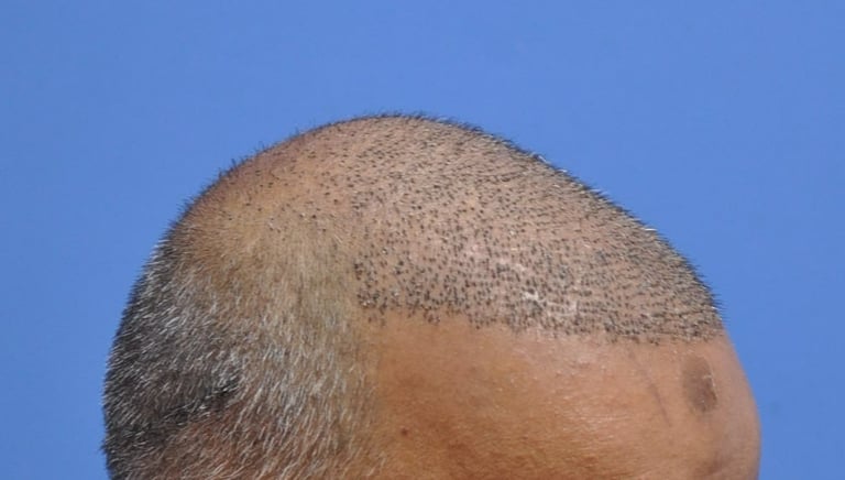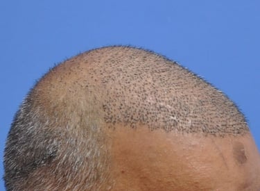Linear scar – a permanent line scar in donor area (though usually hidden by surrounding hair). Can also be corrected by placing grafts from FUE into the strip scar site. Minimized with Trichophytic closure.